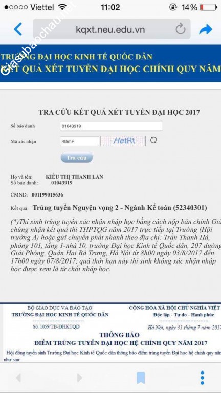 | Trường | ĐH Kinh tế Quốc dân |