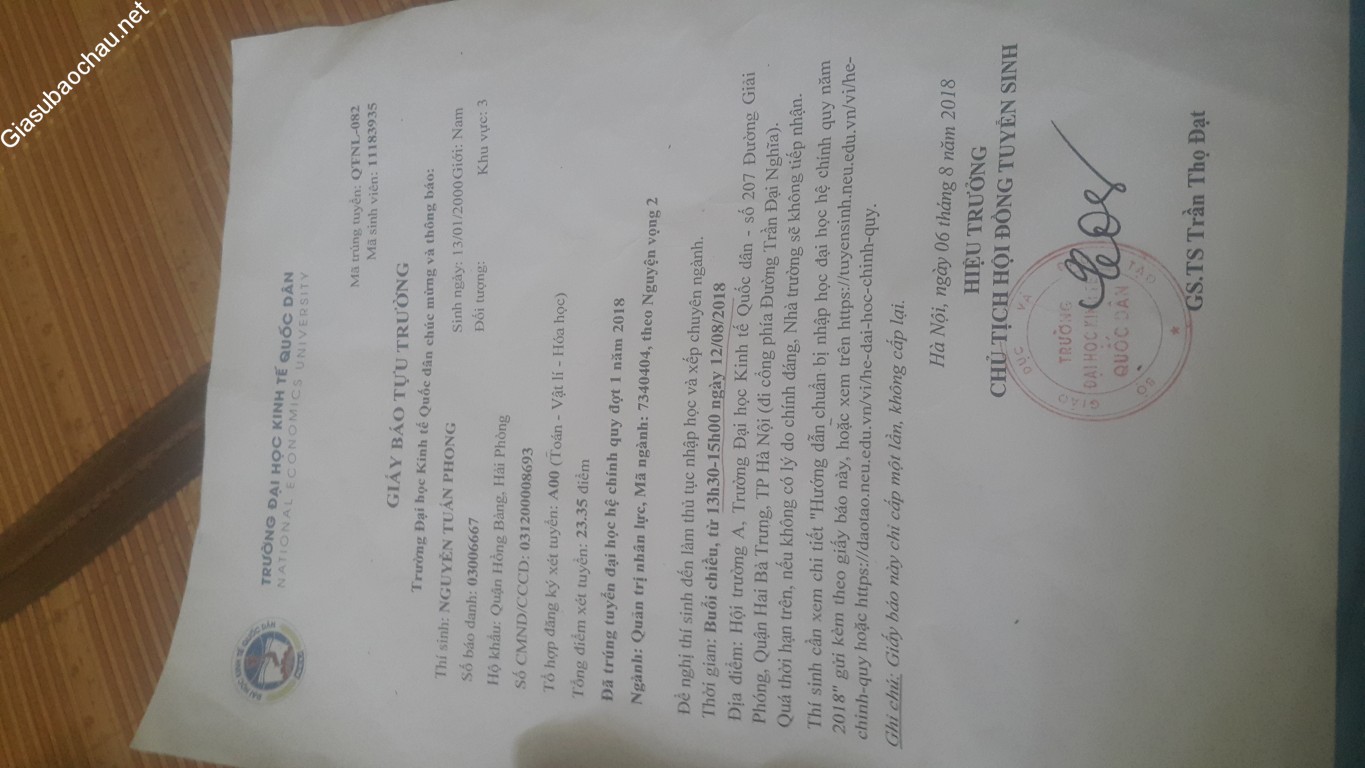 | Trường | ĐH Kinh tế Quốc dân |