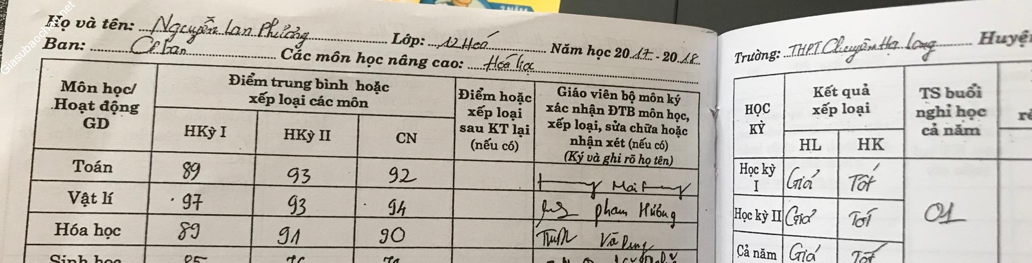 => Thành tích đạt được của tôi có thể chưa được cao như các bạn gia sư khác, nhưng kiến thức và kinh nghiệm sư phạm của tôi đủ chắc chắn để hướng dẫn học sinh, không phải cứ học cao siêu là sẽ trở thành gia sư giỏi mà gia sư giỏi cần có phương pháp tốt. Tôi hi vọng có thể giúp đỡ các bạn học sinh cải thiện kiến thức môn hóa của mình cũng như tạo được hứng thú cho bạn đối với môn học này.