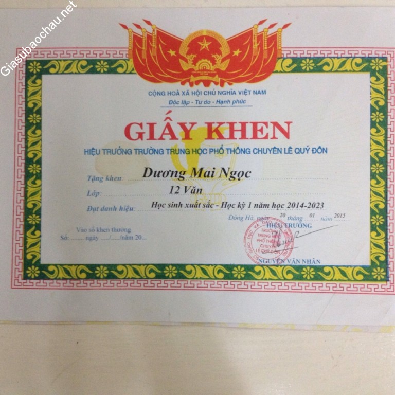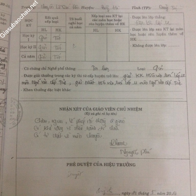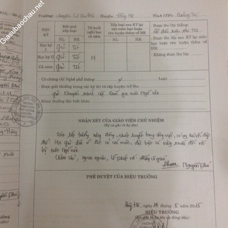*Về thành tích học tập: Cháu là học sinh chuyên môn Ngữ văn, trường THPT chuyên Lê Quý Đôn Quảng Trị