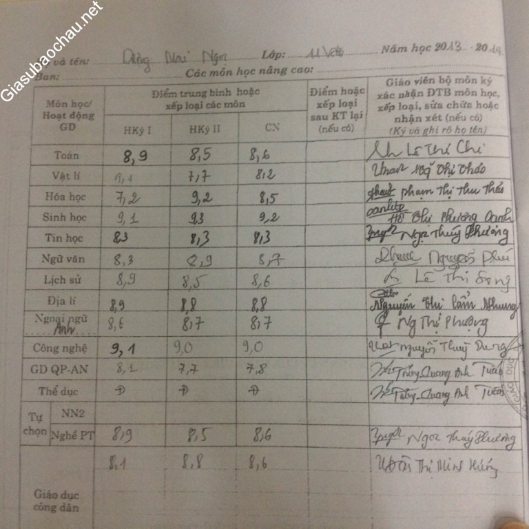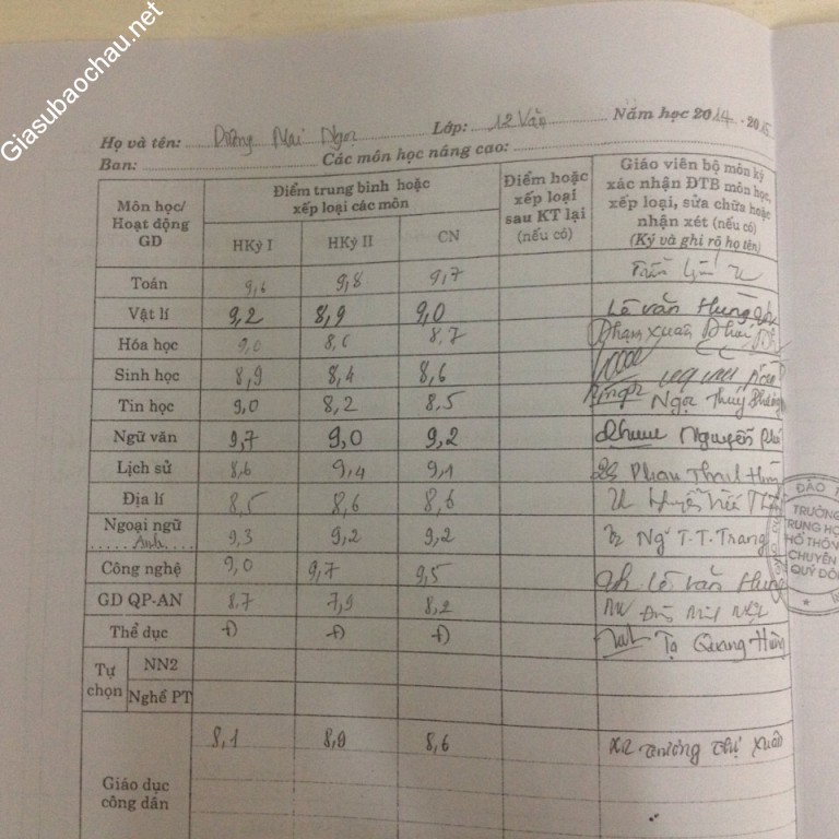 - Tổng kết trung bình môn Ngữ văn năm lớp 11 là 8,9 và năm lớp 12 là 9,0.