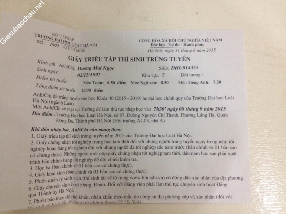 *Cháu tên là Dương Mai Ngọc, hiện đang là sinh viên tại ĐH Luật Hà Nội.