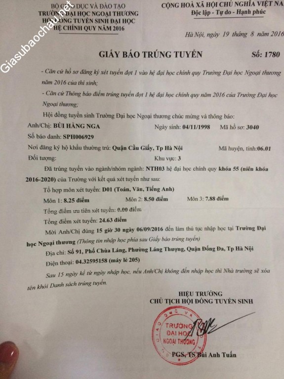 | Trường | ĐH Ngoại thương |