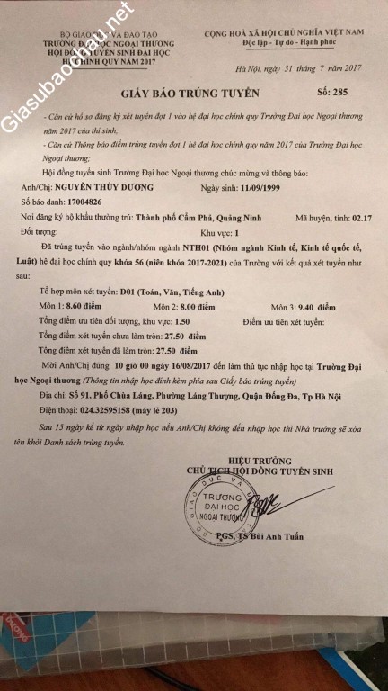 | Trường | ĐH Ngoại thương |