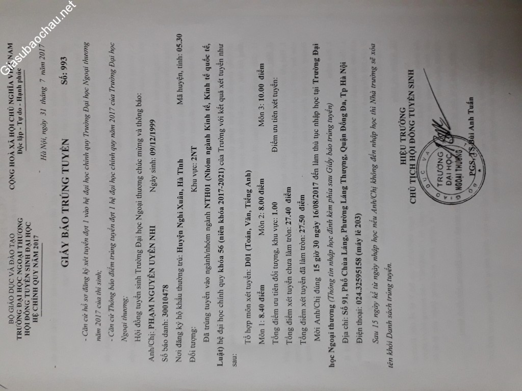 | Trường | ĐH Ngoại thương |