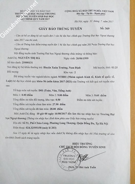 | Trường | Đại học Ngoại Thương |