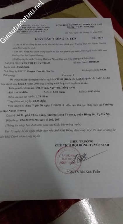+Đang học lớp Chất lượng cao(dạy và học hoàn toàn bằng tiếng anh) Kinh tế Quốc tế tại Đại học Ngoại Thương ( có kèm giấy báo điểm)
