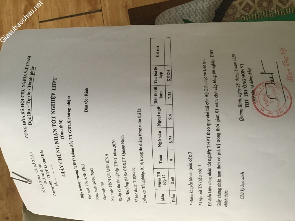 Quý phụ huynh vui lòng xem kỹ thông tin gia sư xem có phù hợp không rồi gọi tới một trong các số: 0966.042.043 (Cô Bảo Châu) - 0966.713.716 (Cô Lệ) của Trung tâm để thông báo việc lựa chọn gia sư này. Trung tâm sẽ gọi điện phỏng vấn gia sư thêm một lần nữa. Nếu gia sư đáp ứng yêu cầu và đồng ý dạy, Trung tâm sẽ gửi số điện thoại của Quý phụ huynh cho gia sư để hai bên trao đổi trực tiếp với nhau.