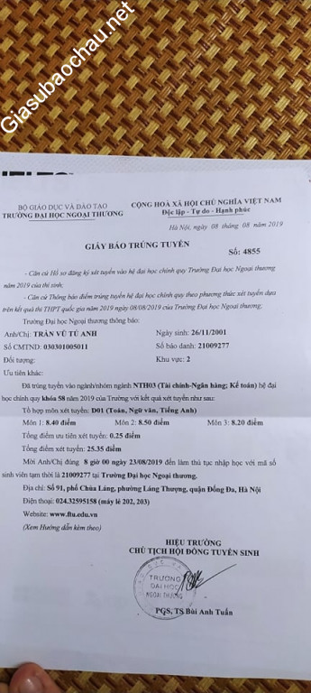 | Trường | ĐH Ngoại thương |