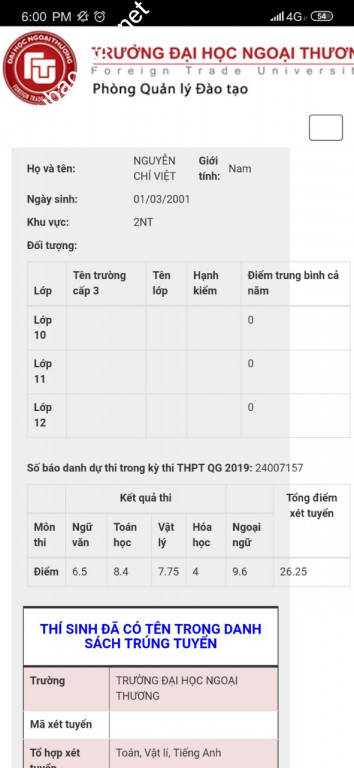 | Trường | ĐH Ngoại thương |