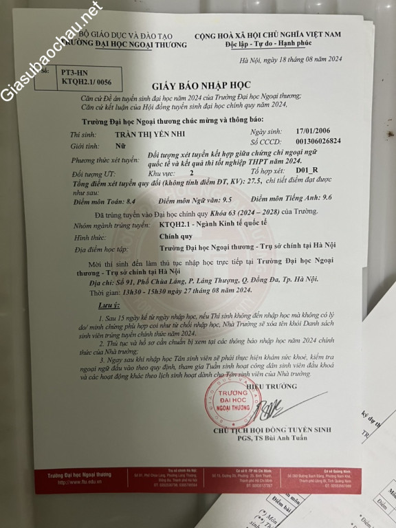 | Khoa | CLC Kinh tế quốc tế (giảng dạy bằng TA) |