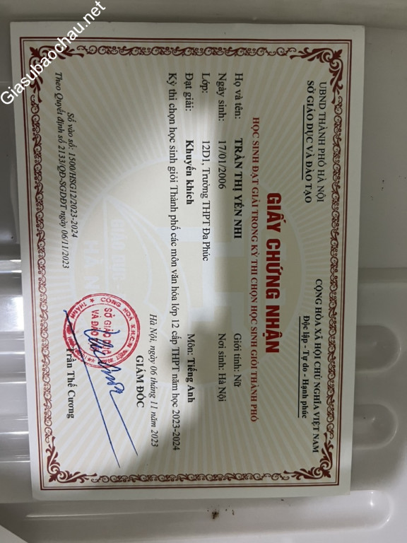 Quý phụ huynh vui lòng xem kỹ thông tin gia sư xem có phù hợp không rồi gọi tới một trong các số: 0966.042.043 (Cô Bảo Châu) - 0966.713.716 (Cô Lệ) của Trung tâm để thông báo việc lựa chọn gia sư này. Trung tâm sẽ gọi điện phỏng vấn gia sư thêm một lần nữa. Nếu gia sư đáp ứng yêu cầu và đồng ý dạy, Trung tâm sẽ gửi số điện thoại của Quý phụ huynh cho gia sư để hai bên trao đổi trực tiếp với nhau.
