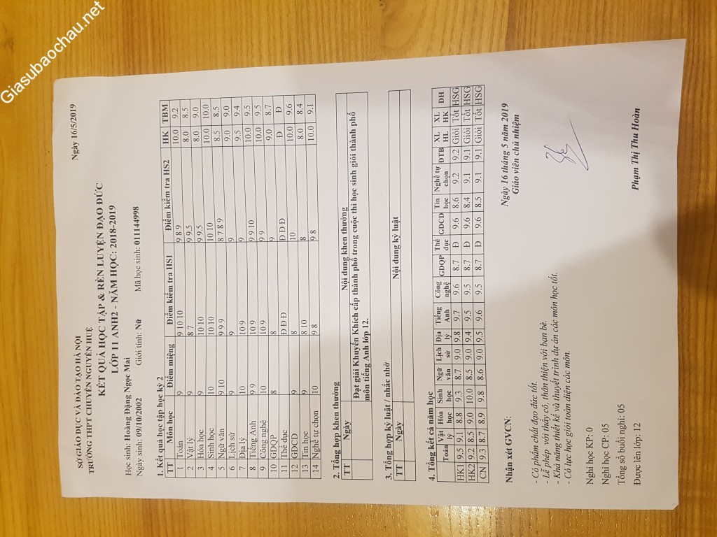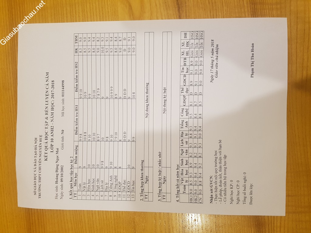 Danh sách TOP những gia sư được các phụ huynh học sinh đánh giá cao nhất.