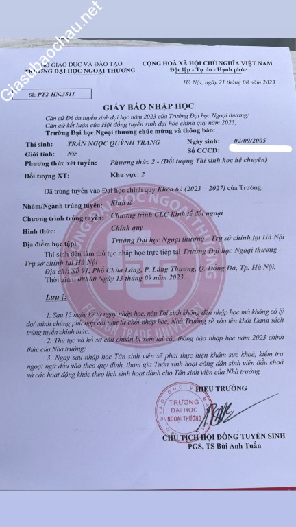 Quý phụ huynh vui lòng xem kỹ thông tin gia sư xem có phù hợp không rồi gọi tới một trong các số: 0966.042.043 (Cô Bảo Châu) - 0966.713.716 (Cô Lệ) của Trung tâm để thông báo việc lựa chọn gia sư này. Trung tâm sẽ gọi điện phỏng vấn gia sư thêm một lần nữa. Nếu gia sư đáp ứng yêu cầu và đồng ý dạy, Trung tâm sẽ gửi số điện thoại của Quý phụ huynh cho gia sư để hai bên trao đổi trực tiếp với nhau.