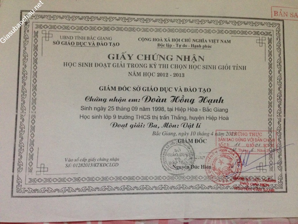 | Mã gia sư | 13834 |