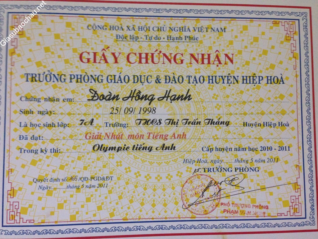 | Sống tại | Ngõ 165 Dương Quảng Hàm |