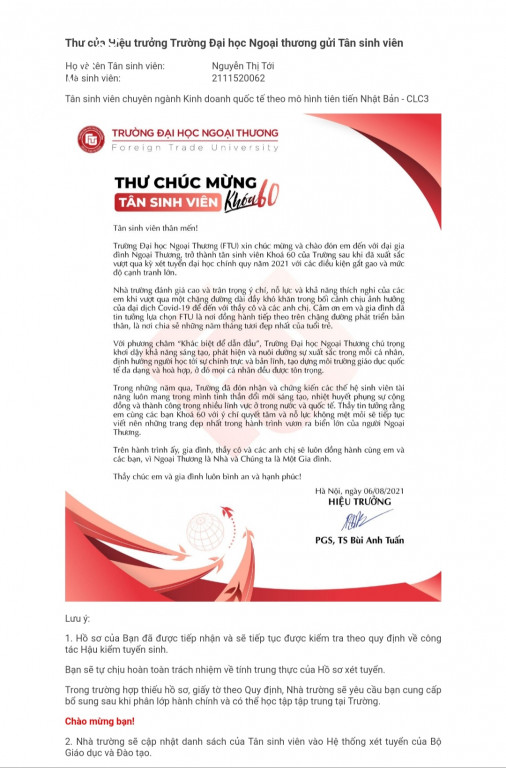 | Trường | ĐH Ngoại thương |