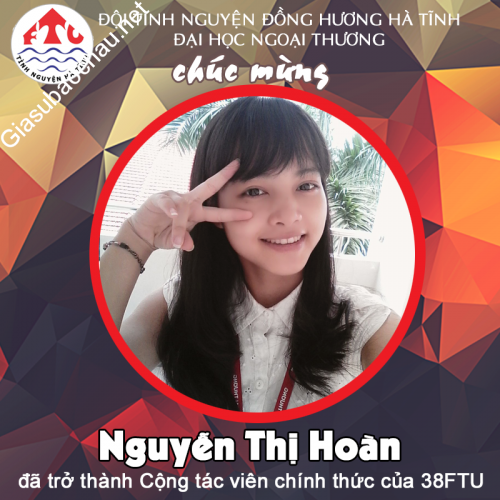 E tên nguyễn thị hoàn , hiện đang là sinh viên năm nhất trường đại học ngoại thương hà nội. E thi vào trường khối A với số điểm : Toán 9,25 ; lý 8,5 ; hóa 8,25. E từng đạt nhiều danh hiệu hsg các môn văn hóa : hsg huyện: giải khuyến khích môn toán lớp 6, giải nhì môn toán lớp 7, giải ba môn toán 8, giải ba môn toán 9, giải khuyến khích giải toán trên máy tính cầm tay casio lớp 8 và lớp 9, giải khuyến khích môn lý lớp 8; học sinh giỏi tỉnh môn toán lớp 11 và lớp 12 ( giải khuyến khích ) . Điểm tổng kết môn toán đều từ 9,2 trở lên.!