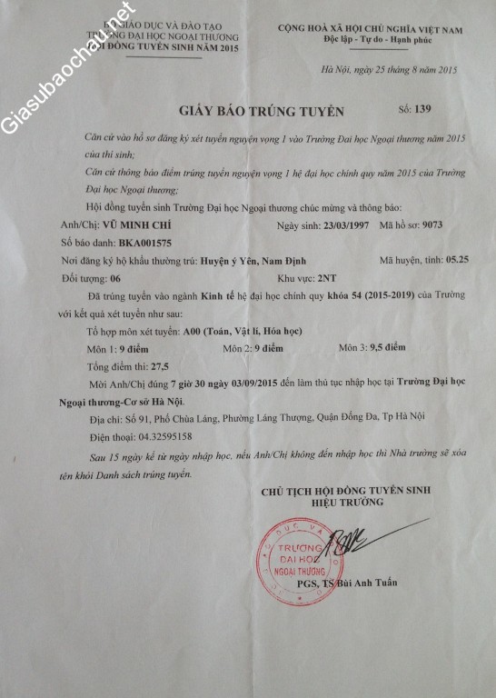 | Trường | ĐH Ngoại thương |