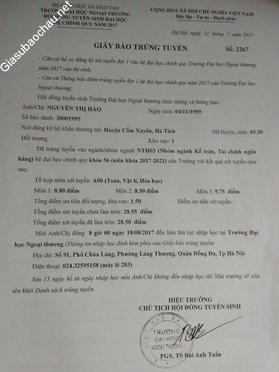| Trường | ĐH Ngoại thương |