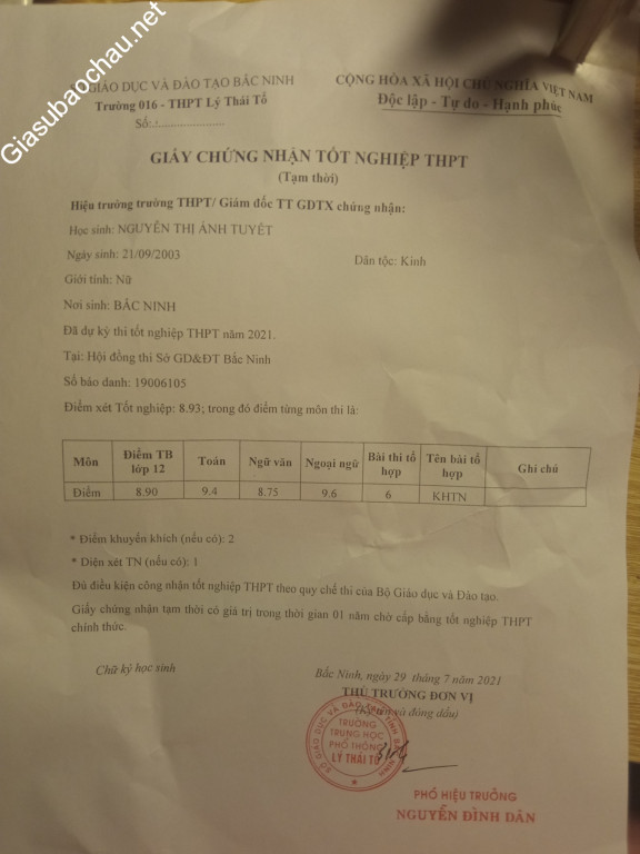 | Quê quán | TX. Từ Sơn - Bắc Ninh |