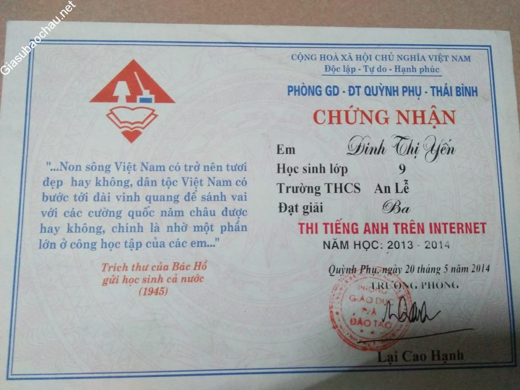 Quý phụ huynh vui lòng xem kỹ thông tin gia sư xem có phù hợp không rồi gọi tới một trong các số: 0966.713.716 (Cô Lệ) - 0966.042.043 (Cô Bảo Châu) của Trung tâm để thông báo việc lựa chọn gia sư này. Trung tâm sẽ gọi điện phỏng vấn gia sư thêm một lần nữa. Nếu gia sư đáp ứng yêu cầu và đồng ý dạy, Trung tâm sẽ gửi số điện thoại của Quý phụ huynh cho gia sư để hai bên trao đổi trực tiếp với nhau.