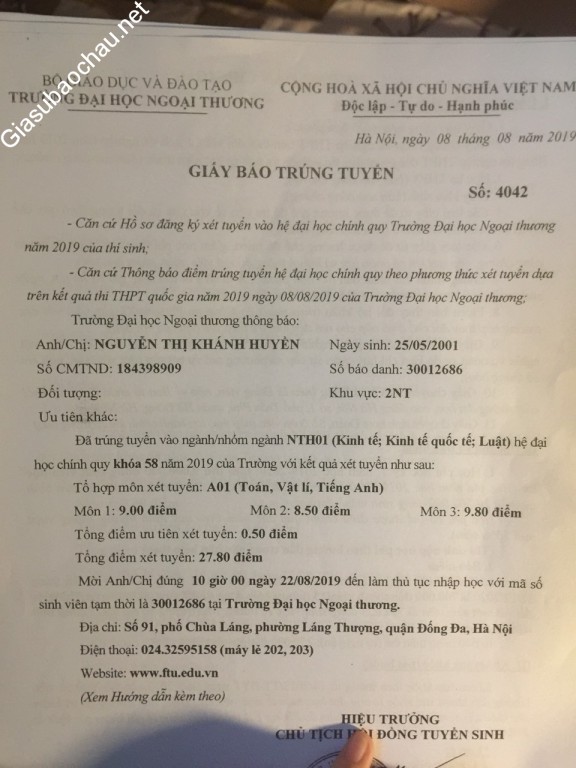 | Khoa | Khoa Kinh Tế Đối Ngoại |