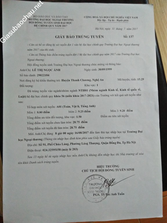 Quý phụ huynh vui lòng xem kỹ thông tin gia sư xem có phù hợp không rồi gọi tới một trong các số: 0966.042.043 (Cô Bảo Châu) - 0966.713.716 (Cô Lệ) của Trung tâm để thông báo việc lựa chọn gia sư này. Trung tâm sẽ gọi điện phỏng vấn gia sư thêm một lần nữa. Nếu gia sư đáp ứng yêu cầu và đồng ý dạy, Trung tâm sẽ gửi số điện thoại của Quý phụ huynh cho gia sư để hai bên trao đổi trực tiếp với nhau.
