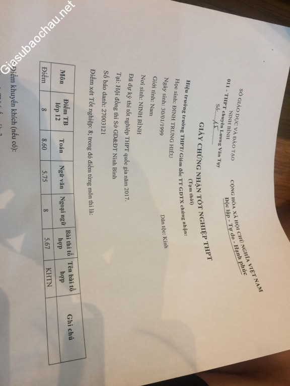 | Quê quán | TP. Ninh Bình - Ninh Bình |