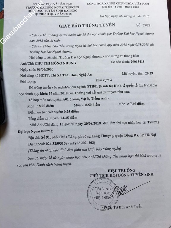 | Trường | ĐH Ngoại thương |