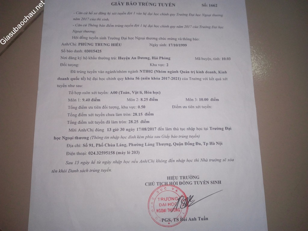 | Khoa | Quản trị kinh doanh Quốc tế |