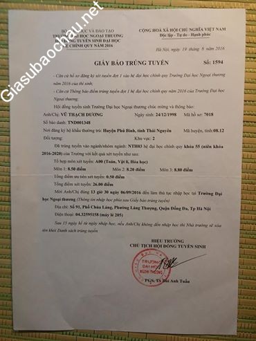 | Trường | ĐH Ngoại thương |