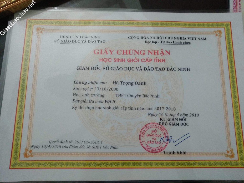 + Cấp 3: lớp 12 đạt giải ba cuộc thì HSG cấp tỉnh môn vật lý.