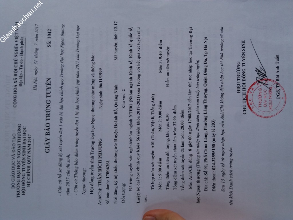 Quý phụ huynh vui lòng xem kỹ thông tin gia sư xem có phù hợp không rồi gọi tới một trong các số: 0966.042.043 (Cô Bảo Châu) - 0966.713.716 (Cô Lệ) của Trung tâm để thông báo việc lựa chọn gia sư này. Trung tâm sẽ gọi điện phỏng vấn gia sư thêm một lần nữa. Nếu gia sư đáp ứng yêu cầu và đồng ý dạy, Trung tâm sẽ gửi số điện thoại của Quý phụ huynh cho gia sư để hai bên trao đổi trực tiếp với nhau.