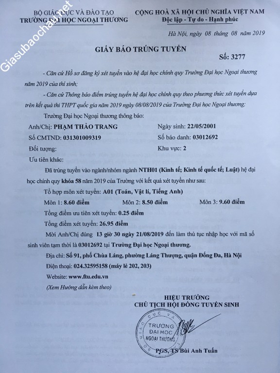 Quý phụ huynh vui lòng xem kỹ thông tin gia sư xem có phù hợp không rồi gọi tới một trong các số: 0966.042.043 (Cô Bảo Châu) - 0966.713.716 (Cô Lệ) của Trung tâm để thông báo việc lựa chọn gia sư này. Trung tâm sẽ gọi điện phỏng vấn gia sư thêm một lần nữa. Nếu gia sư đáp ứng yêu cầu và đồng ý dạy, Trung tâm sẽ gửi số điện thoại của Quý phụ huynh cho gia sư để hai bên trao đổi trực tiếp với nhau.