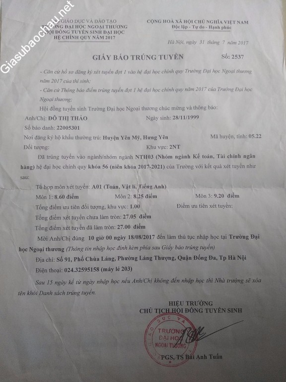 | Trường | ĐH Ngoại thương |
