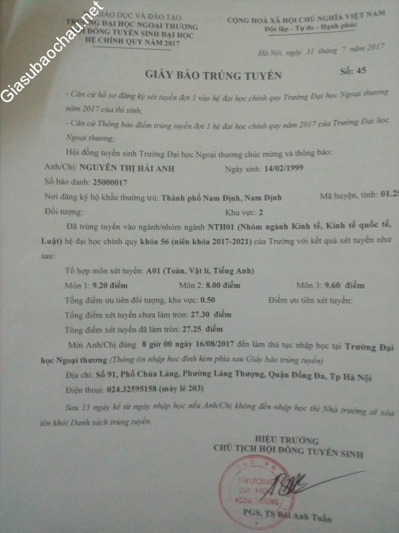 | Trường | ĐH Ngoại thương |