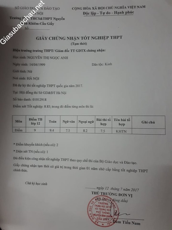| Quê quán | Bắc Từ Liêm - Hà Nội |