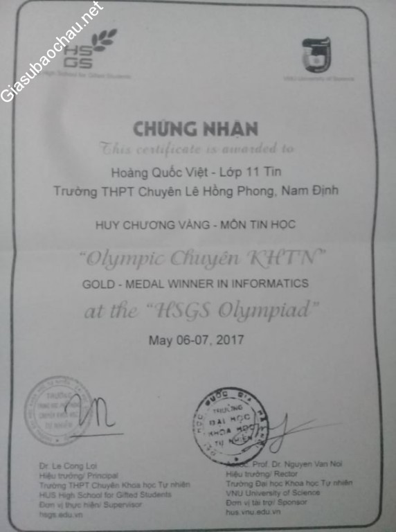 Trong quá trình học, mình đã tham gia nhiều kì thi hsg tin học và đạt các thành tích như: