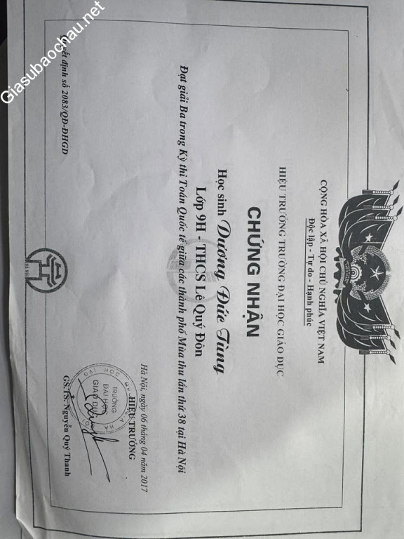Danh sách TOP những gia sư được các phụ huynh học sinh đánh giá cao nhất.