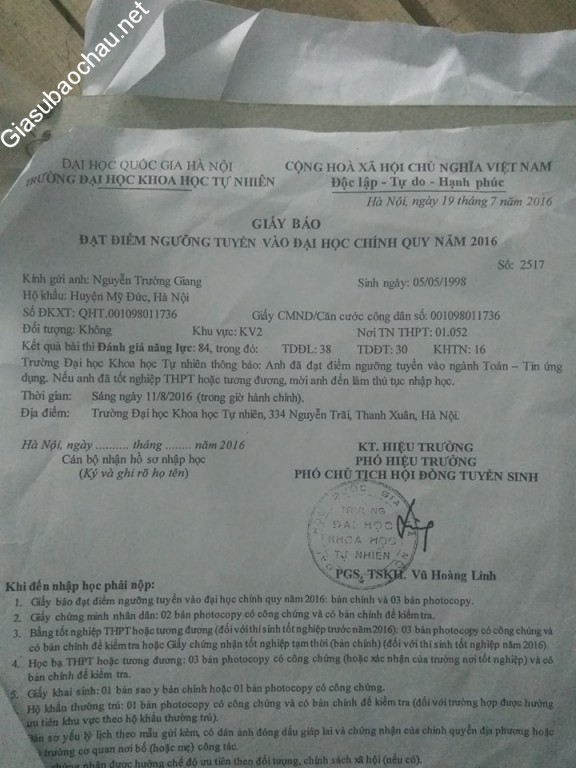 | Trường | ĐH QGHN - ĐH Khoa học Tự nhiên |