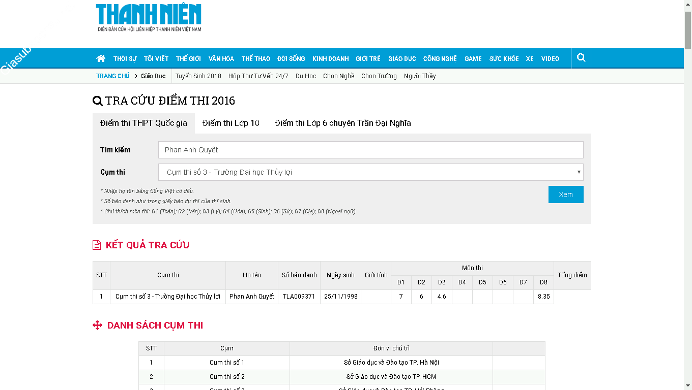 | Sống tại | gần Đại học Bách Khoa Hà Nội |