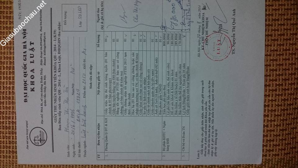 | Trường | ĐH Quốc gia Hà Nội |