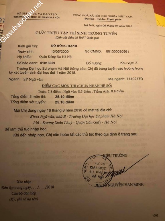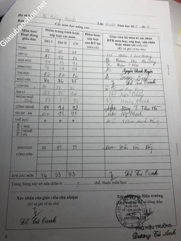 + Bên cạnh đó, mình đã và đang dạy Văn cho một số em học sinh, cả học cơ bản lẫn ôn thi học sinh giỏi và ôn chuyên ( mình có kinh nghiệm dạy kèm Văn cho các em học sinh bé hơn từ khi mình lên cấp 3, các em mình gia sư đều có kết quả tiến bộ và đạt đúng nguyện vọng các em mong muốn) . Điển hình như năm 2018 vừa qua những em học sinh lớp 9 mình dạy đỗ vào Chu Văn An, Phan Đình Phùng, chuyên Tự Nhiên, Nguyễn Tất Thành và các học sinh lớp 12 đỗ vào ĐH Kinh tế Quốc Dân, Ngoại Thương, ĐH Hà Nội,..