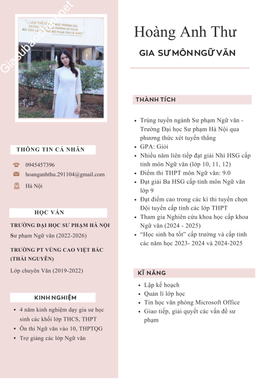 Quý phụ huynh vui lòng xem kỹ thông tin gia sư xem có phù hợp không rồi gọi tới một trong các số: 0966.042.043 (Cô Bảo Châu) - 0966.713.716 (Cô Lệ) của Trung tâm để thông báo việc lựa chọn gia sư này. Trung tâm sẽ gọi điện phỏng vấn gia sư thêm một lần nữa. Nếu gia sư đáp ứng yêu cầu và đồng ý dạy, Trung tâm sẽ gửi số điện thoại của Quý phụ huynh cho gia sư để hai bên trao đổi trực tiếp với nhau.