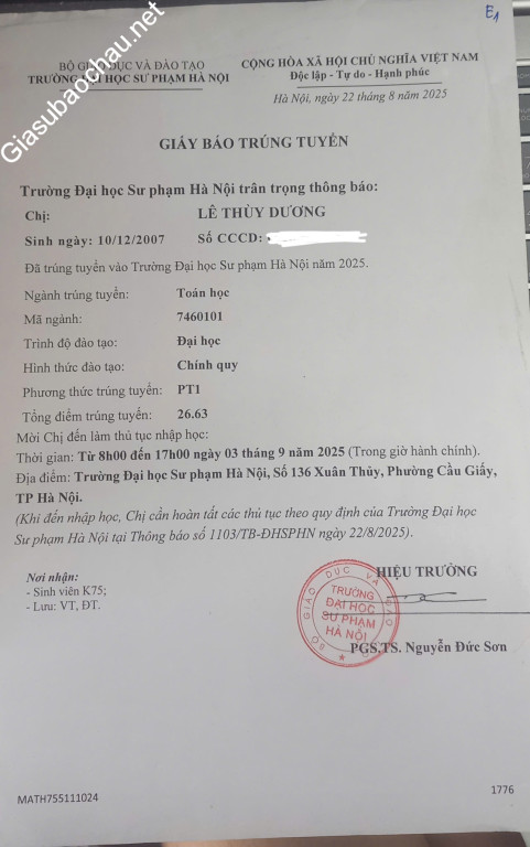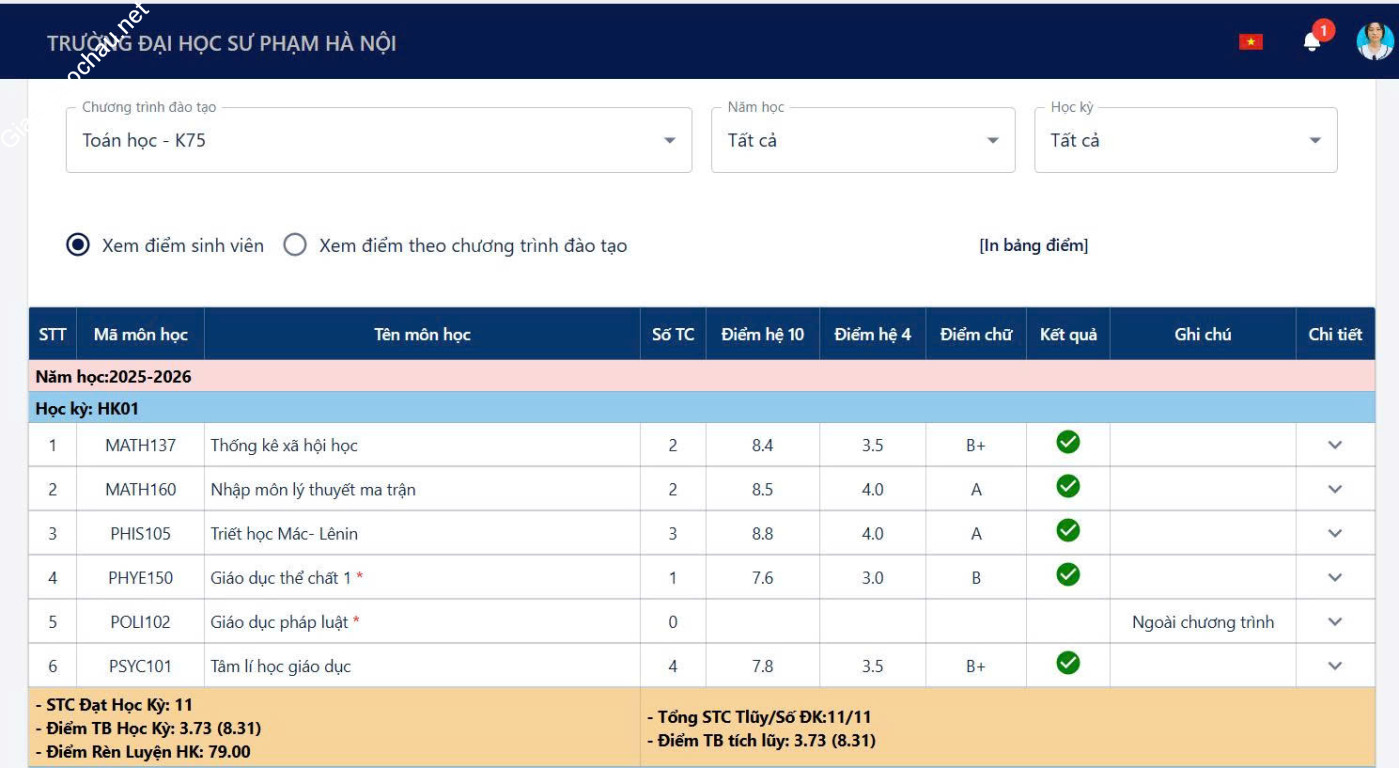 | Trường | ĐH Sư phạm Hà Nội |