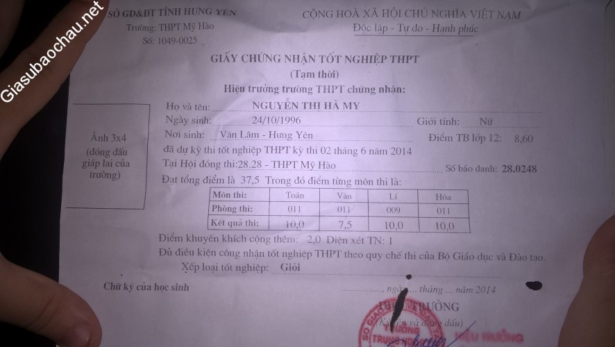 Em đã gia sư cho một em học lớp 12, ban đầu em bị mất gốc môn Hóa và Toán. Sau một thời gian gia sư em đã giúp cho em thi đại học được 8 Hóa và 7,5 Toán.