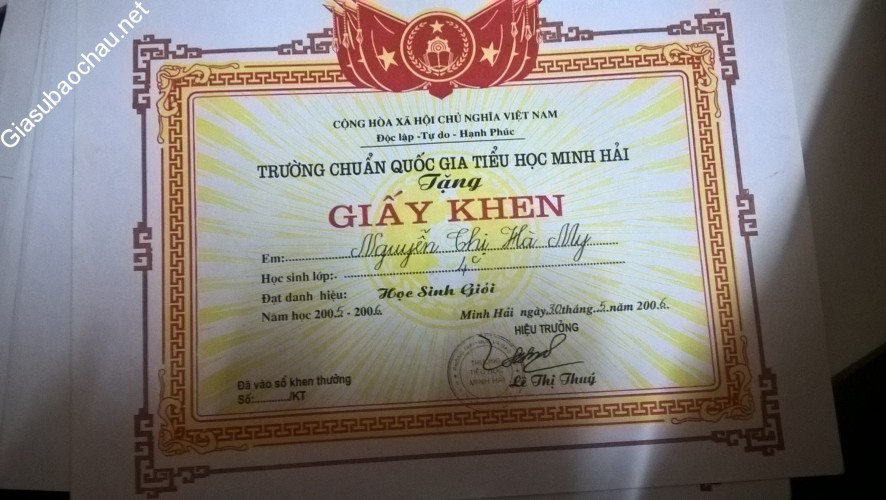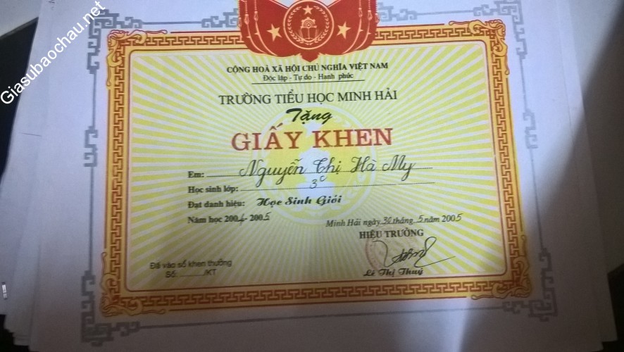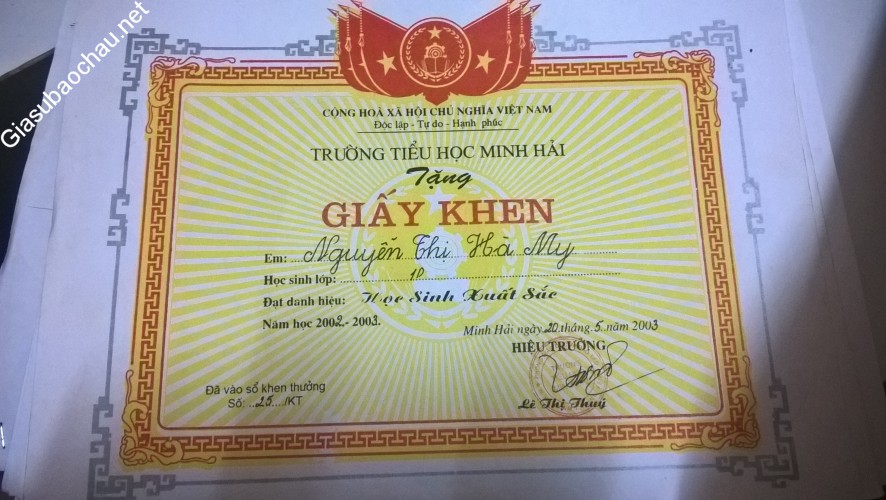 - 12 năm học đều đạt được danh hiệu học sinh giỏi, học sinh xuất sắc.