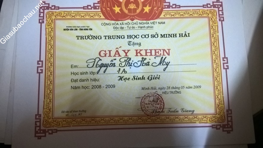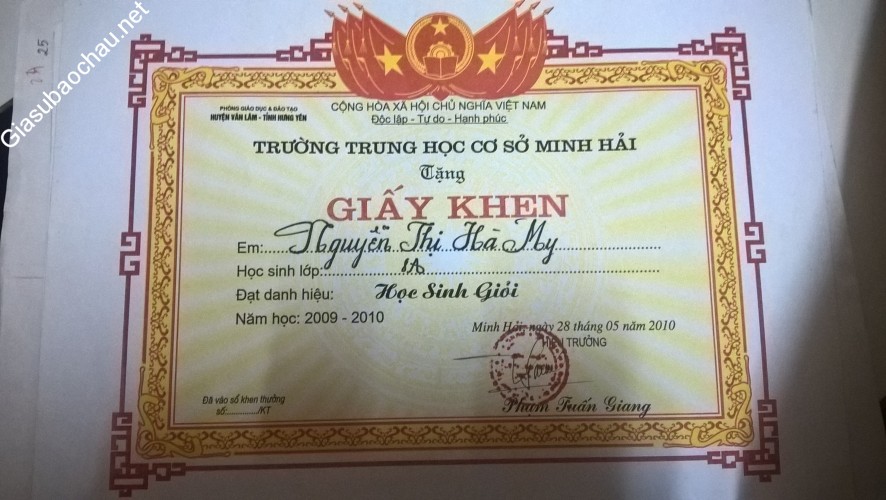 + Đạt giải ba HSG tỉnh môn Toán lớp 9.