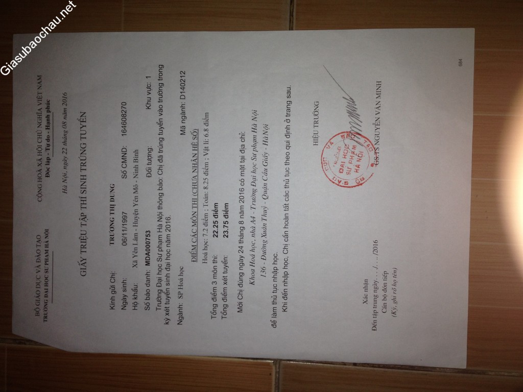 Quý phụ huynh vui lòng xem kỹ thông tin gia sư xem có phù hợp không rồi gọi tới một trong các số: 0966.042.043 (Cô Bảo Châu) - 0966.713.716 (Cô Lệ) của Trung tâm để thông báo việc lựa chọn gia sư này. Trung tâm sẽ gọi điện phỏng vấn gia sư thêm một lần nữa. Nếu gia sư đáp ứng yêu cầu và đồng ý dạy, Trung tâm sẽ gửi số điện thoại của Quý phụ huynh cho gia sư để hai bên trao đổi trực tiếp với nhau.